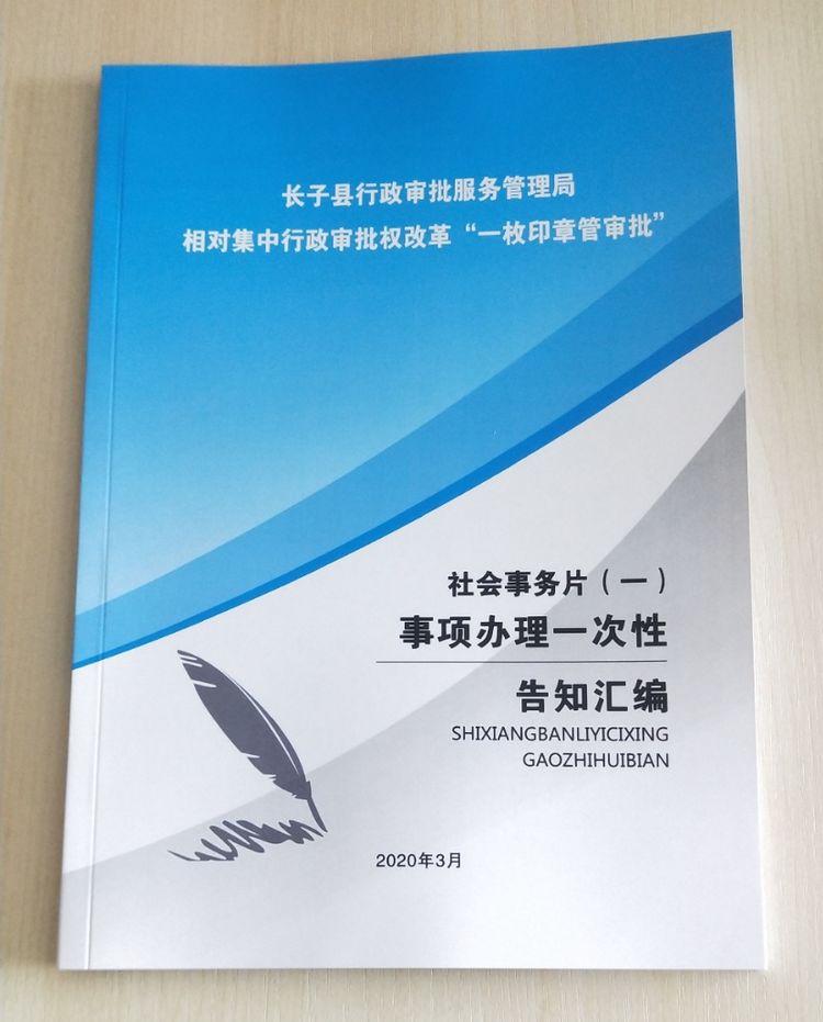 目前共计275项行政审批项目划转到行政审批局。工作人员已逐条捋清、整理成册,现已印刷出书,书名行政审批事项“一次性告知书"。此书大大提高了办事效率,方便了群众办事,一看书就知道在哪个窗口办事,一看书就知道准备什么手续办证,一看书就知道什么时候方能取证。