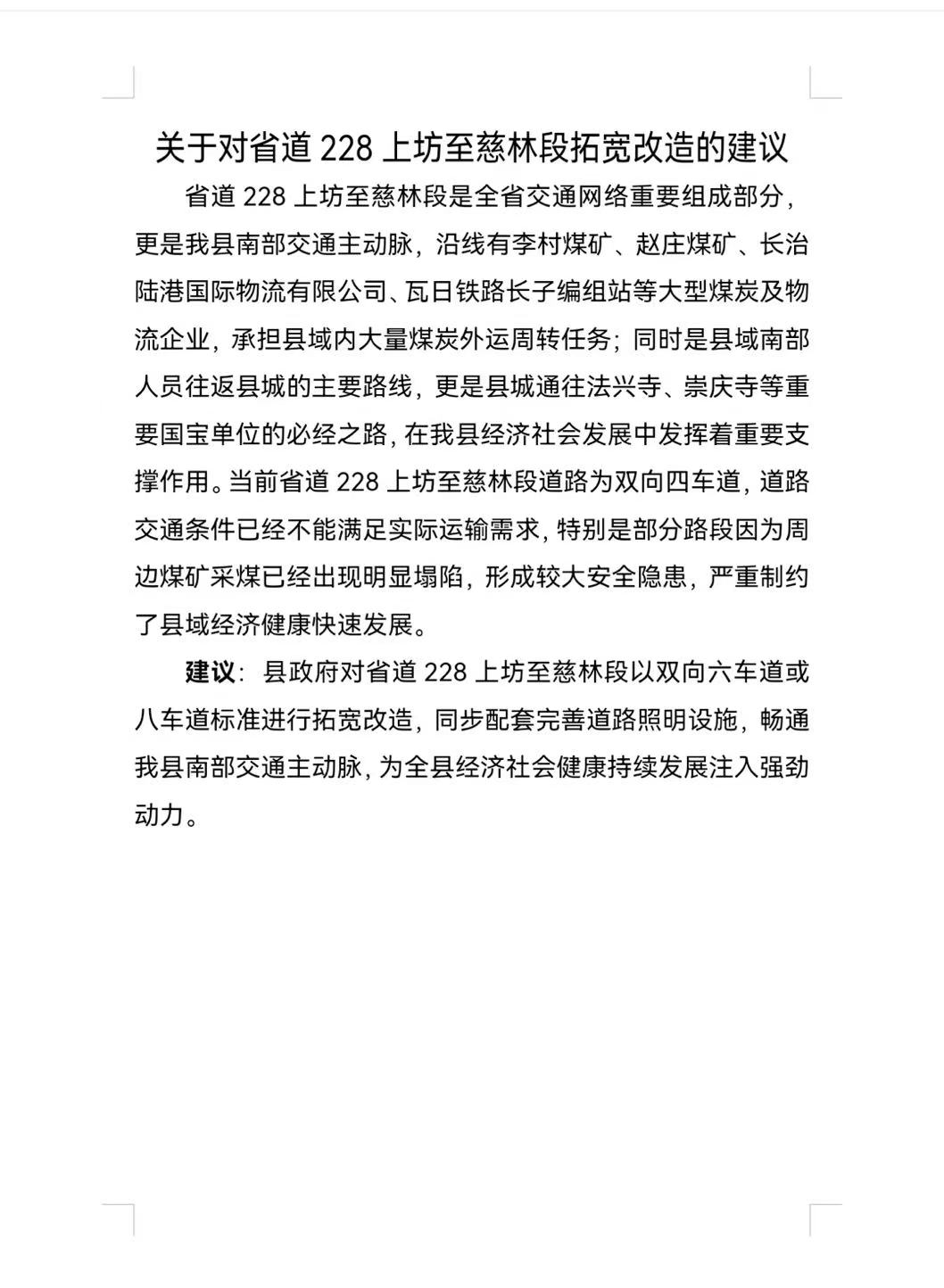 标题关于对省道228上坊至慈林段拓宽改造的建议