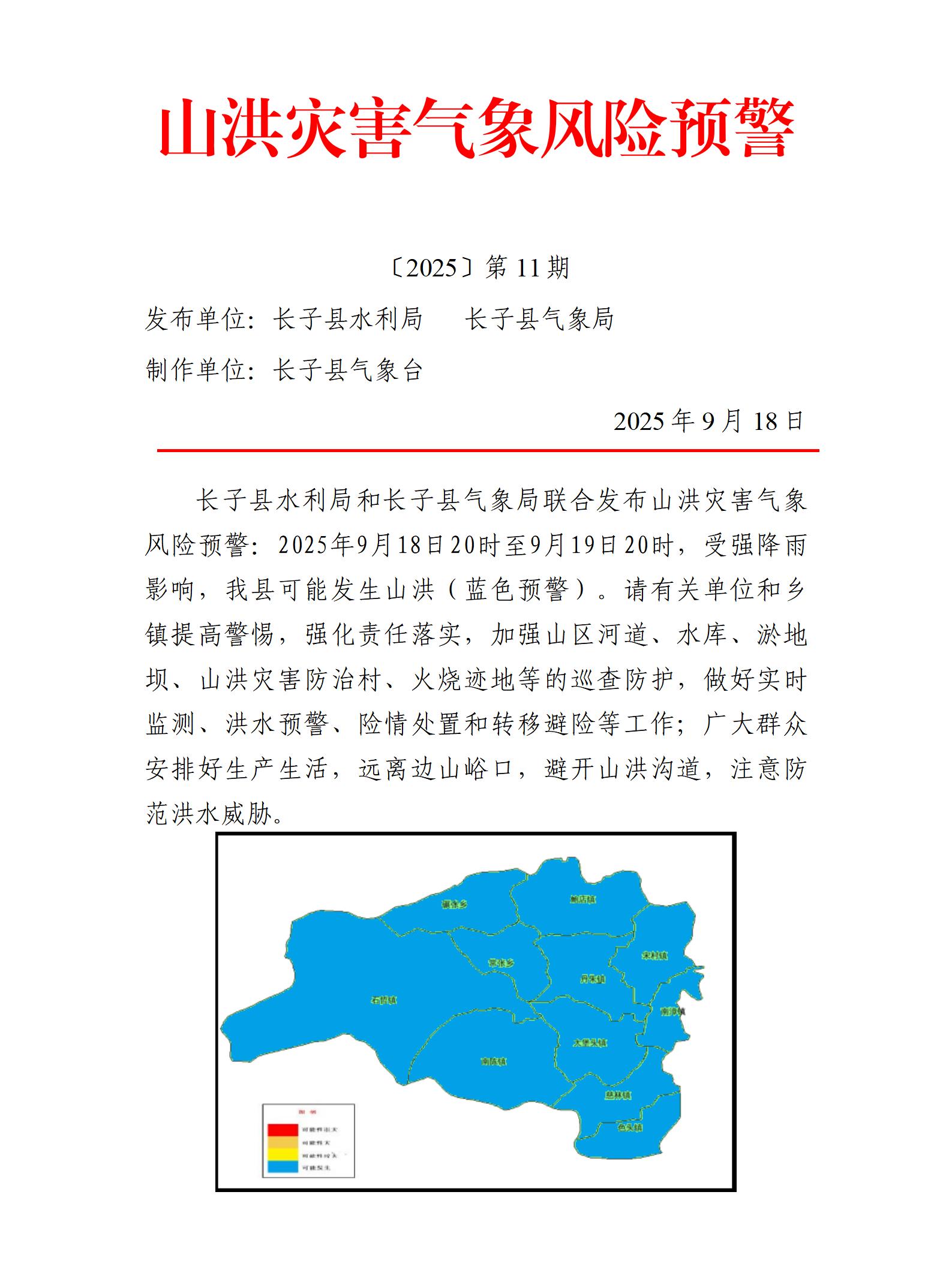 通知:各村要根据气象条件,开展好降雨天气和防汛防涝应对工作,重点对地质灾害点、河道、水库和城市易积水区域、地质灾害监测开展排查,关注农业生产和群众住房安全,强化应急处置。如有紧急情况,请及时上报。