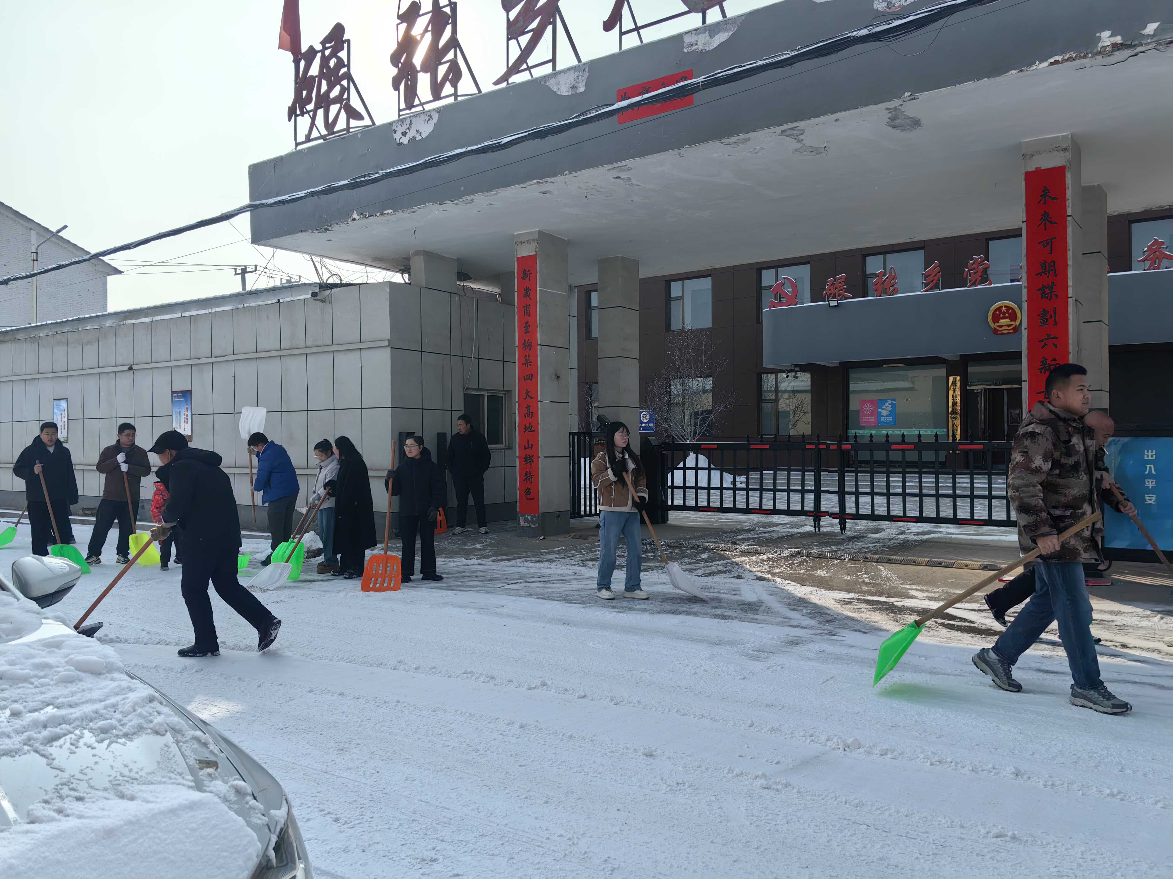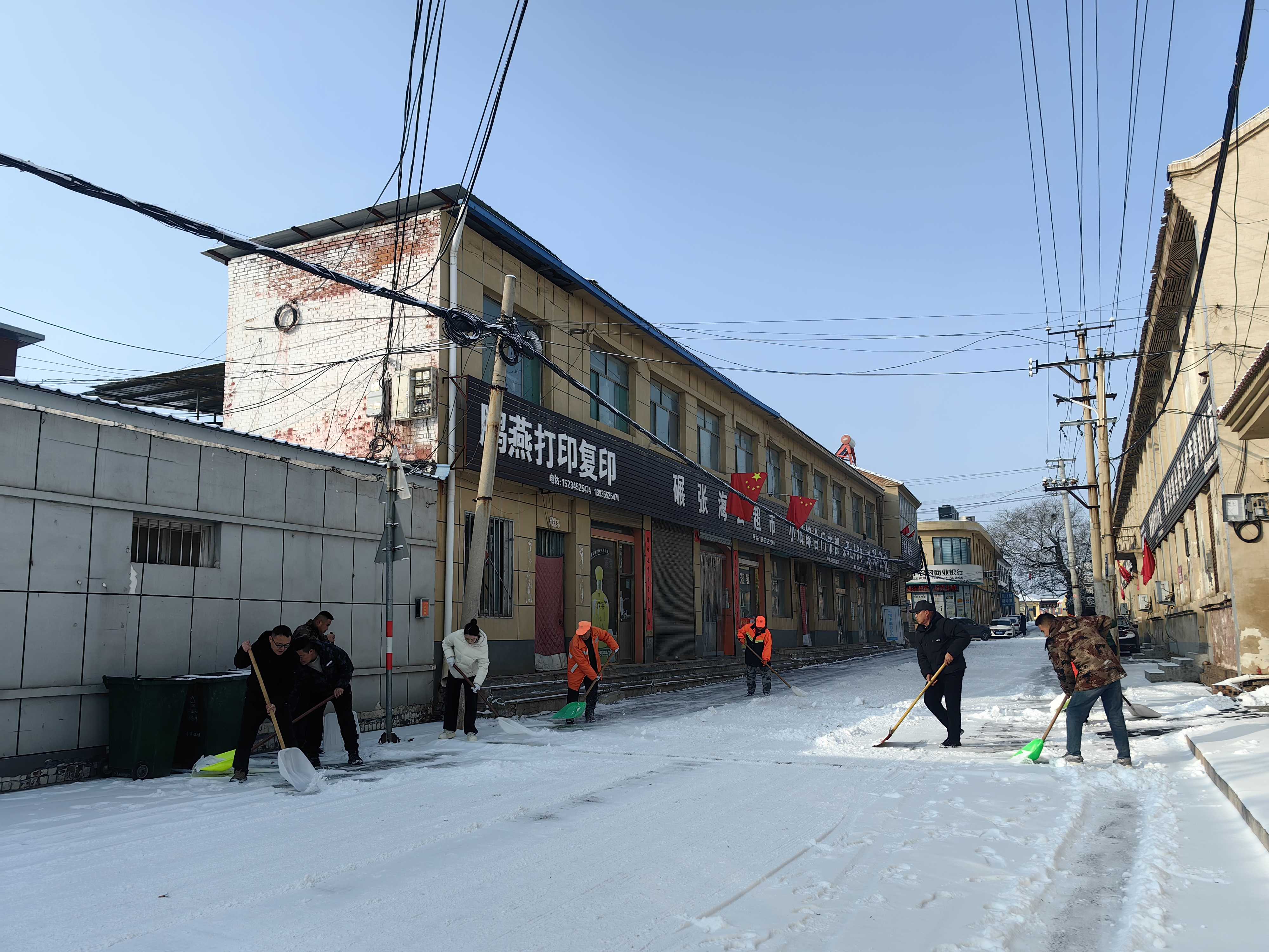 碾张乡领导干部分片包干,重点清理政府周边、学校、卫生院等人员密集区域,为群众出行扫清障碍;各村组织村干部、党员志愿者、村民代表对村内主干道、背街小巷、村民房前屋后积雪进行全面清理,同步排查农村道路安全隐患。针对孤寡老人、困难群众等特殊群体,党员志愿者们还上门清扫院落积雪、检查房屋保暖情况,用实际行动践行“为民办实事”的初心,全力保障群众温暖安全过冬。