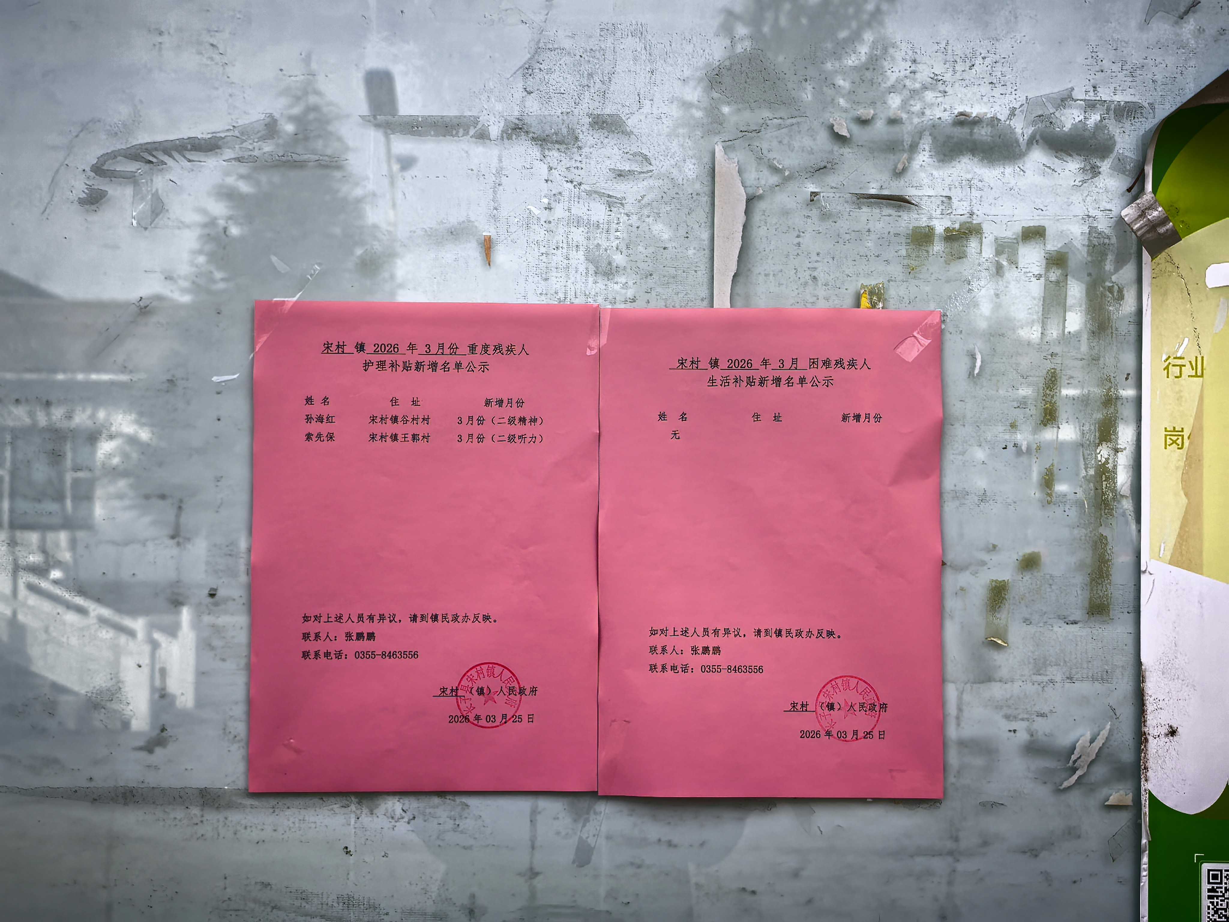 标题宋村镇2026年3月困难残疾人生活补贴新增名单公示