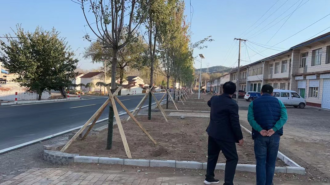 10月22日,石哲镇武装部部长梁晓伟在马箭村指导村庄绿化工作