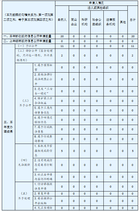 政务新媒体开设流程,督促认证主体发生变动的单位及时报备、关停,坚持做好定期自查,确保全县政务新媒体及时更新,内容规范。(二)依申请公开情况。严格按照《中华人民共和国政府信息公开条例》要求,健全联动协调机制,畅通受理渠道,依法依规做好全县政府信息依申请公开工作。2024年全县行政机关共受理政府依申请公开20件,办结20件。实现信息公开申请的接收、登记、审核、办理、答复、归档闭环管理。切实提高依申请公开处理水平,依法保障公民申请获取政府信息的权利。