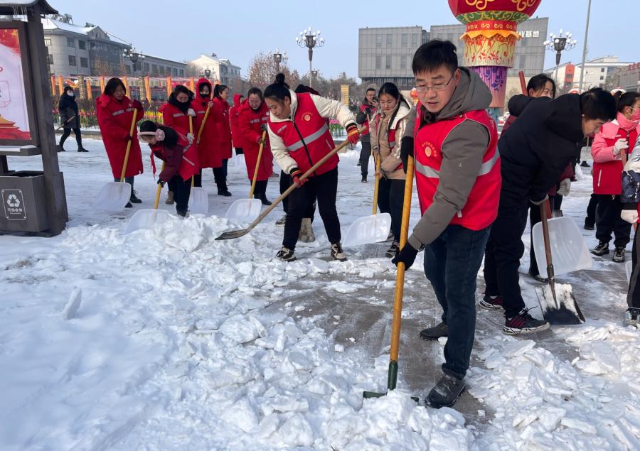 活动中,大家分工明确、齐心协力,充分发扬不怕苦、不怕累的精神,手拿铁锹、扫帚、推雪铲等工具,铲的铲、扫的扫,全力清除府前广场积雪积冰。经过大家的共同努力,积雪覆盖的路面被清理得干干净净。