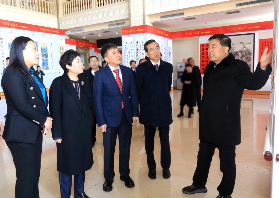 2月22日,县委书记郭强,县委副书记、县长牛志强,县委副书记、统战部部长王慧忠,县人大常委会主任王宇红,县政协主席吴斌等县四套班子领导在长子会堂参观我县2024年“千年古县 神话长子”元宵节书画摄影展。