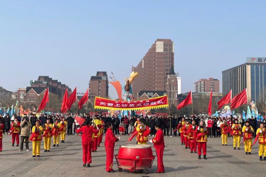 秧歌舞蹈队伴着欢快的鼓点,踏着轻快的步伐,尽情展现着秧歌的独特魅力,传递着新年的祝福。