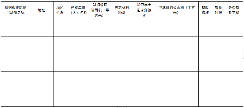 全县易燃可燃夹芯材料彩钢板建筑消防安全综合整治排查明细表