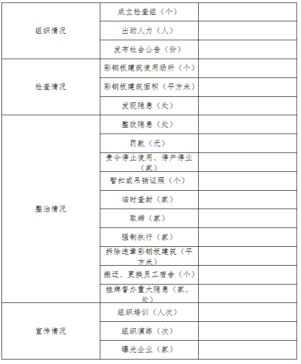 全县易燃可燃夹芯材料彩钢板建筑消防安全综合整治汇总表