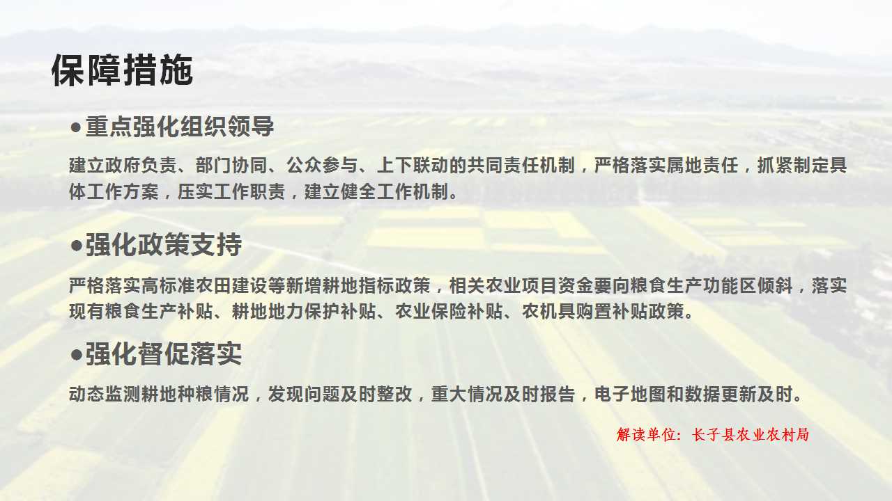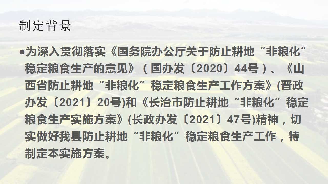 原文链接:长子县人民政府办公室关于印发长子县防止耕地“非粮化”稳定粮食生产实施方案的通知
