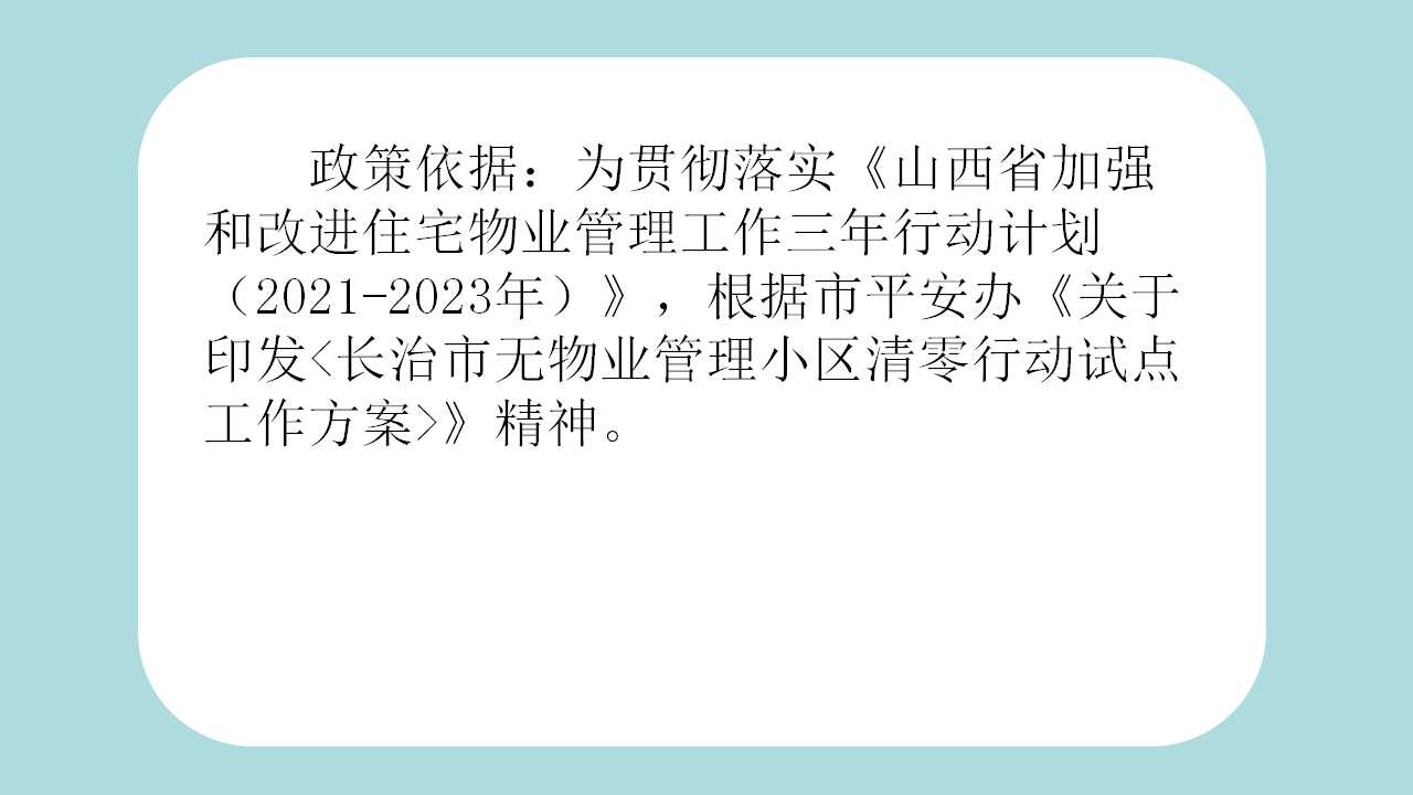 原文链接:长子县人民政府办公室关于印发长子县无物业管理小区清零行动试点工作方案的通知