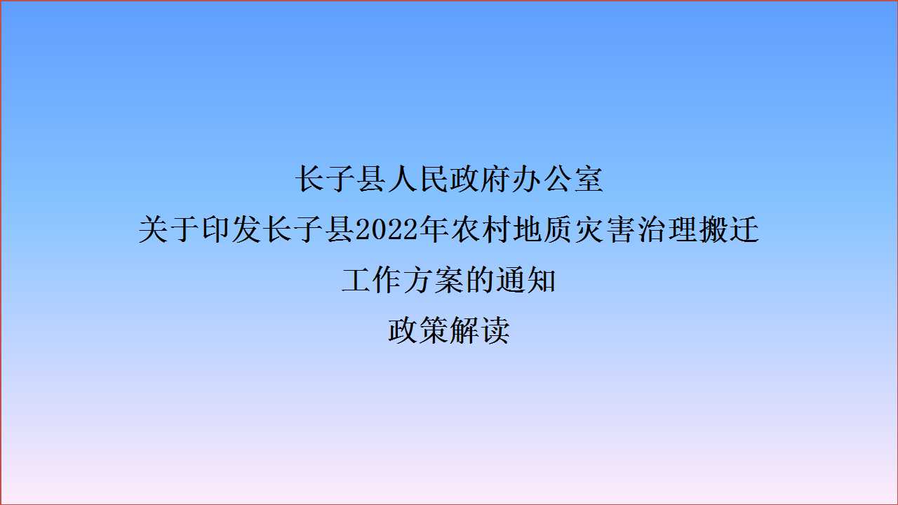 原文链接:长子县人民政府办公室关于印发长子县2022年农村地质灾害治理搬迁工作实施方案的通知