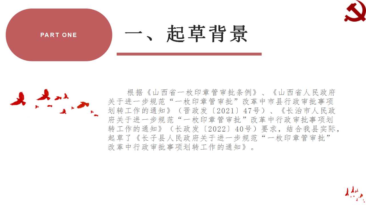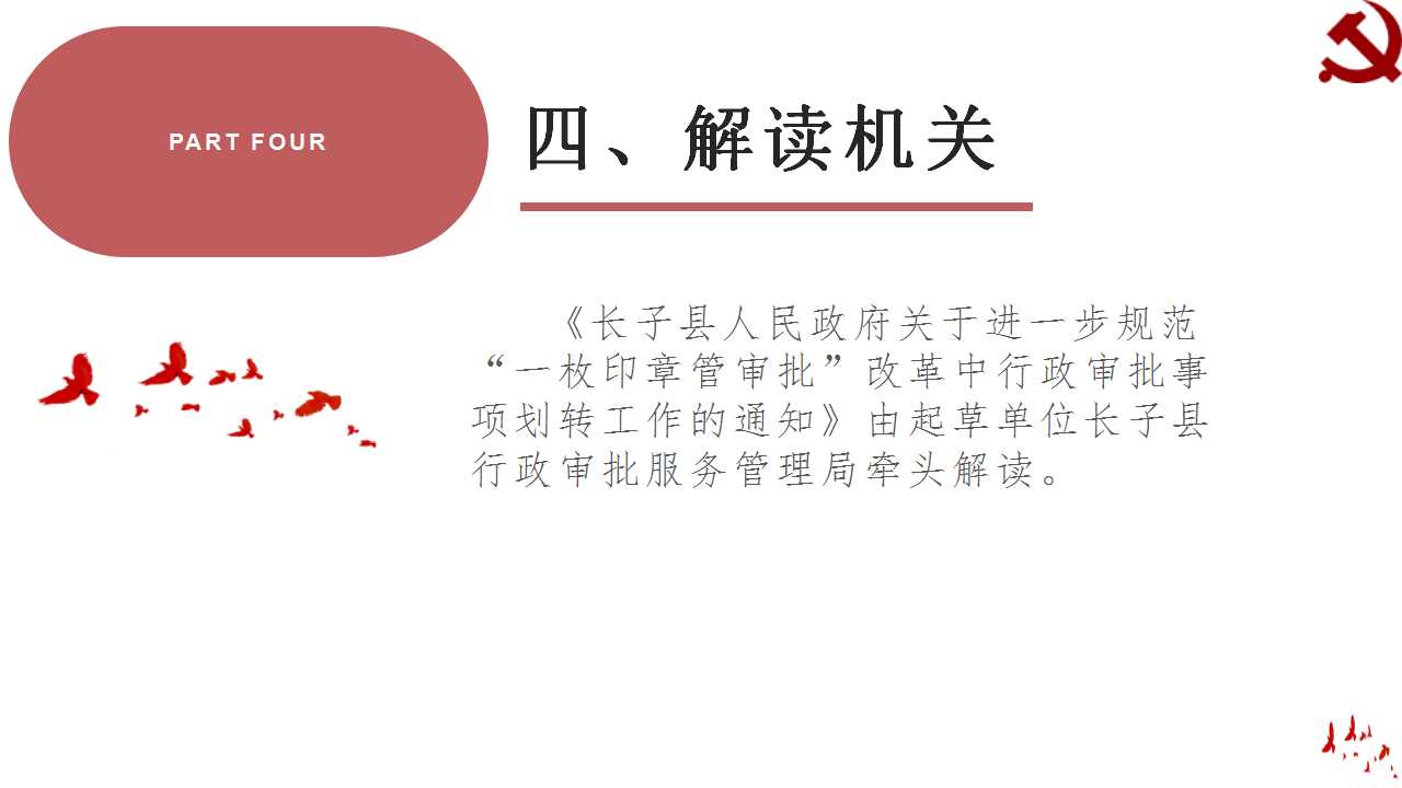 原文链接:长子县人民政府关于进一步规范“一枚印章管审批”改革中行政审批事项划转工作的通知