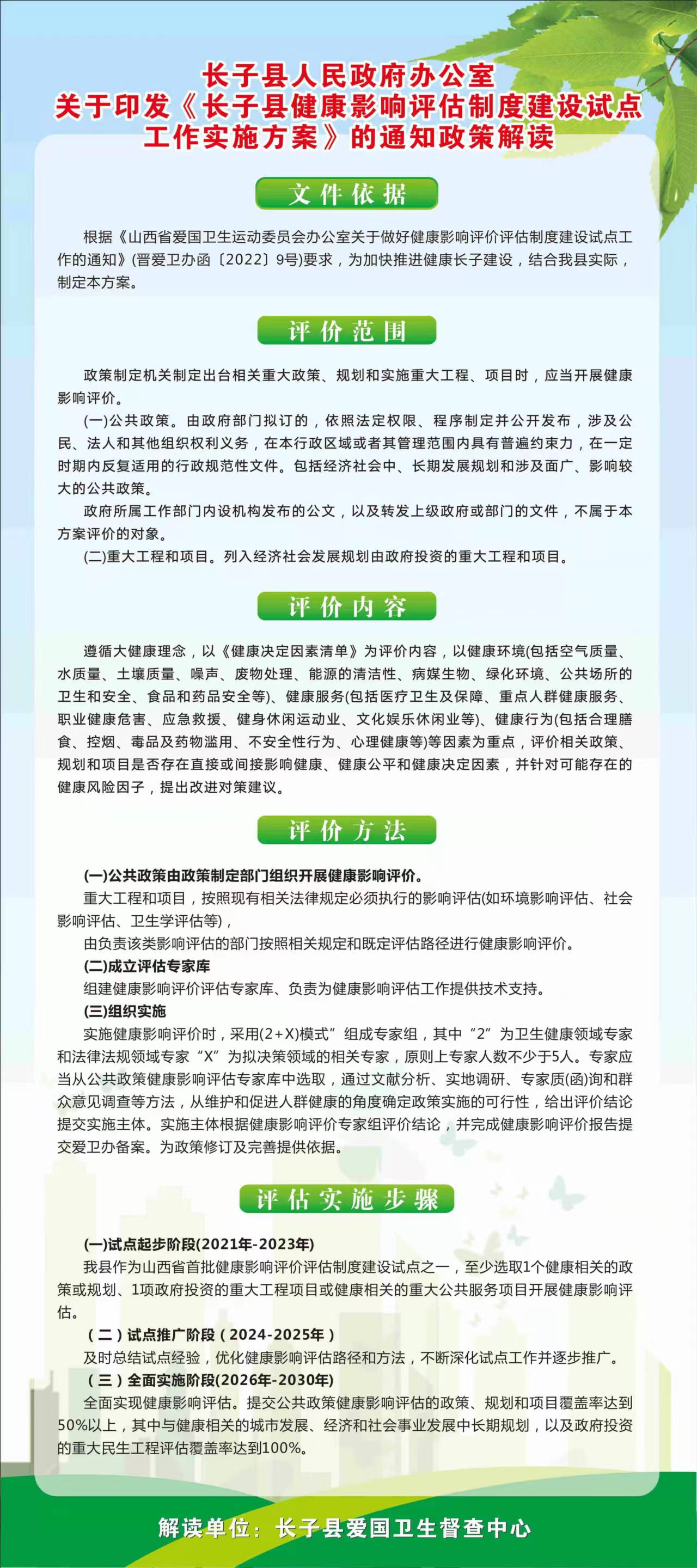 原文链接:长子县人民政府办公室 关于印发长子县健康影响评估制度建设 试点工作实施方案的通知