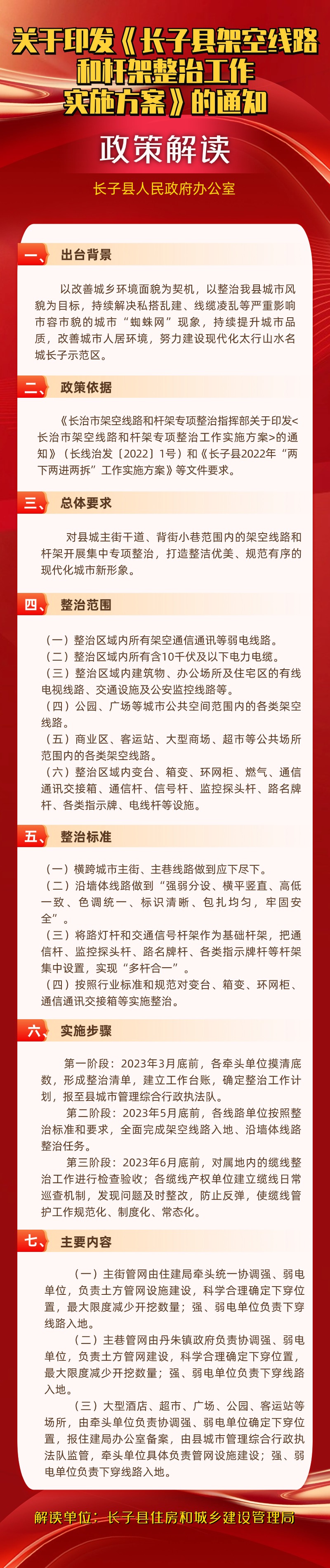 原文链接:长子县人民政府办公室关于印发长子县架空线路和杆架整治工作实施方案的通知